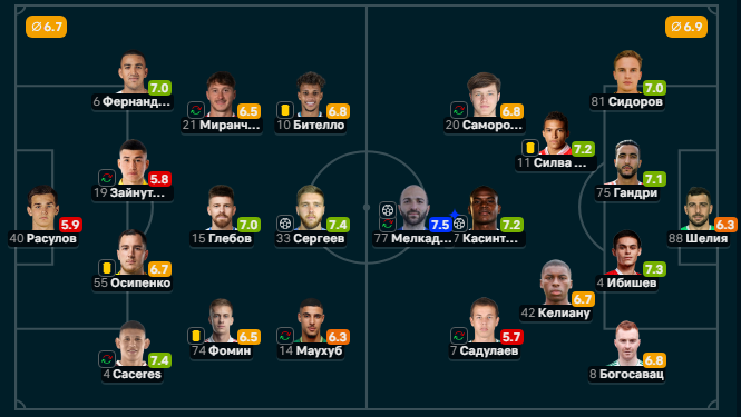 Шелия — Сидоров, Ибишев, Гандри, Богосавац — Келиано, Силва — Самородов (Жемалетдинов 75′), Касинтура, Садулаев (Мансилья 65′) — Мелкадзе (Конате 81′)