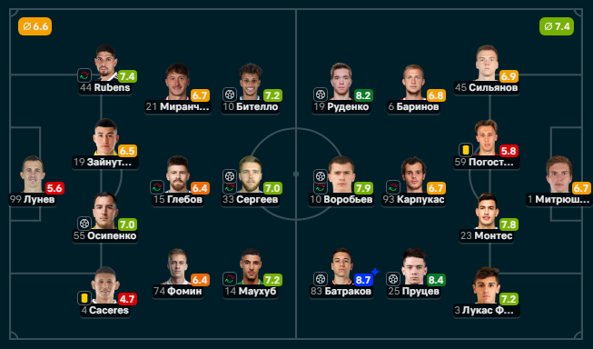 Митрюшкин — Сильянов, Монтес, Погостнов, Фассон — Баринов, Карпукас (Комличенко 58′) — Пруцев, Батраков, Руденко — Воробьёв (Ненахов 90+5′)